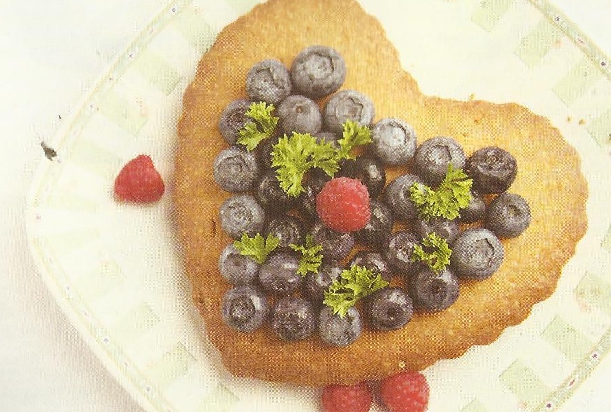 7. Let it cook down after taking our of the oven. Decorate some blueberry candies on its surface.