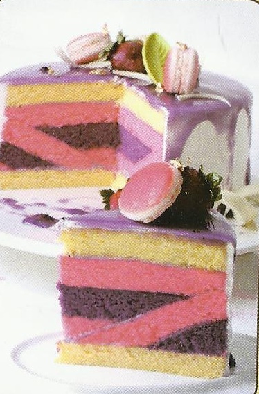 8.Setelah matang dan dingin tumpuk menjadi 3 lapis(strawberry-blueberry-strawberry), lalu dilapis dengan Bahan G.