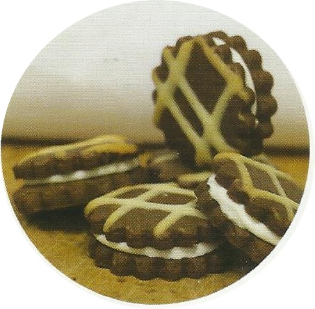 8. Poles salah satu bagian biscuit dan semprotkan filling diatasnya dan tempel dengan biscuit yang lain.
